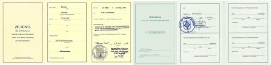 Bedingung für die Teilnahme an diesen Lehrgängen ist wiederum eine Unbedenklichkeitsbescheinigung nach §34 Abs.2 der Ersten Verordnung zum SprengG, die auch wieder das zuständige Ordnungsamt ausstellt.