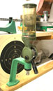 Den vorher genannten Pulvertrickler stelle ich immer so neben die Waage, daß das Tricklerrohr über der Waagschale positioniert ist. Somit kann ich bei Ladungen, bei denen ich wirklich zu 100 % identische Füllungen garantieren möchte, die fehlenden Pulverkörnchen direkt auf die Schale werfen. Das bedeutet aber, daß der Pulverfüller so justiert wurde, daß er zuverlässig 0,2 grain weniger als geplant auswirft.